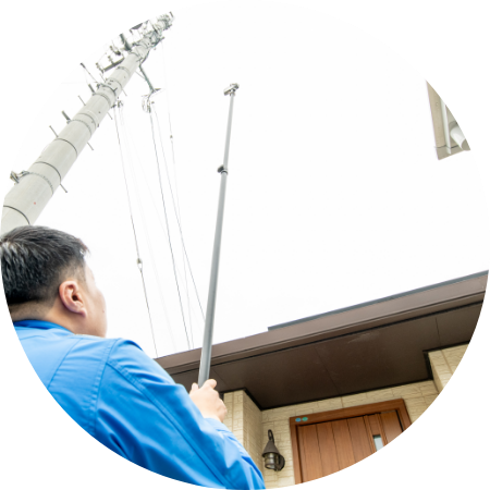 屋根の現地調査の際は、屋根には登らず高所カメラを使用して隅々まで屋根の状態をチェックいたします。